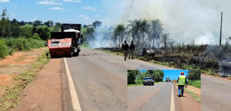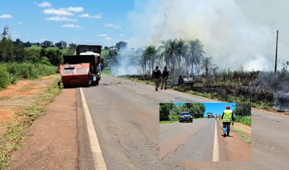 Um grave acidente de trânsito foi registrado na manhã desta terça-feira (17) na BR-376, entre as cidades de Ivinhema e Deodápolis. A colisão envolvendo um caminhão-caçamba e um carro GM Astra causou grande destruição nos veículos e mobilizou equipes de resgate e combate a incêndios.