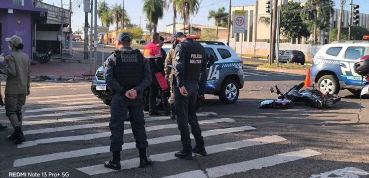 Um acidente envolvendo duas motocicletas no cruzamento da Avenida Manoel da Costa Lima com a Avenida Ernesto Geisel, em Campo Grande, deixou três pessoas feridas na manhã deste domingo (17).