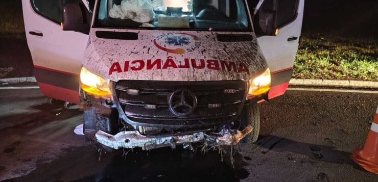 Uma ambulância da prefeitura de Bodoquena sofreu um acidente na madrugada desta sexta-feira enquanto realizava o transporte de uma paciente para Campo Grande. O veículo saiu da pista e atingiu a rotatória de acesso ao município de Dois Irmãos do Buriti, na rodovia BR-262, por volta das 03h17. A unidade levava uma gestante em estado grave, que estava entubada e apresentava complicações respiratórias no momento do deslocamento.