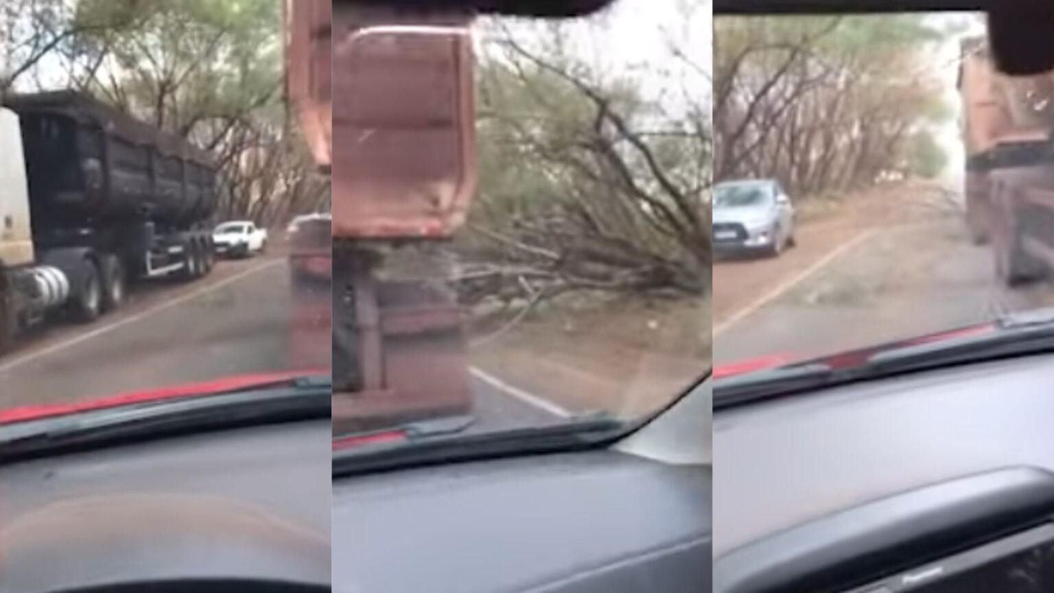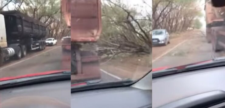 Imagens gravadas por um motorista que passava pelo local mostram o momento em que a carreta é atingida pela árvore, que cedeu repentinamente à beira da pista. No vídeo, é possível ver uma fila de veículos no sentido contrário, obrigados a trafegar pelo acostamento devido à interdição parcial da via.