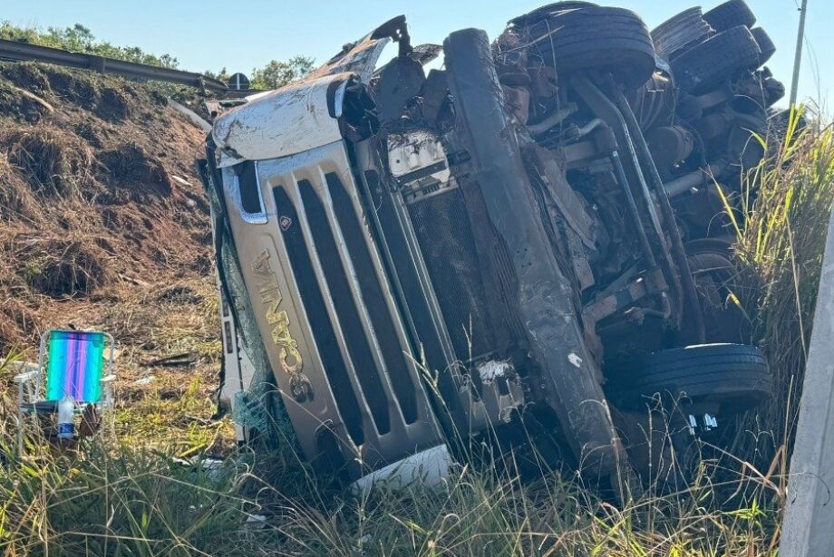 Com isso, o veículo invadiu a pista contrária e atingiu lateralmente o caminhão-tanque de nove eixos, que seguia no sentido da rotatória da MS-480. O impacto fez com que o tanque, carregado de diesel, saísse da pista e tombasse em uma ribanceira.