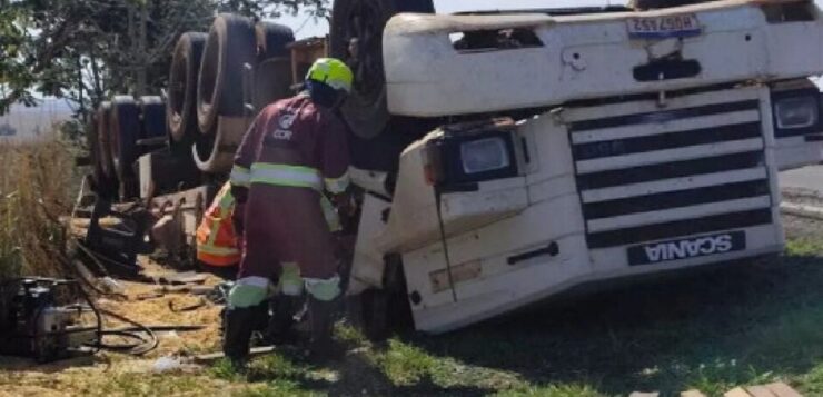 Um motorista morreu na tarde de terça-feira (14) após o caminhão que conduzia, carregado com milho, sair da pista e tombar na BR-163, entre os municípios de Naviraí e Juti, em Mato Grosso do Sul.