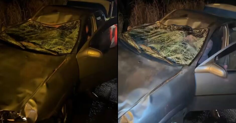 Deodápolis, MS – Dois homens ficaram feridos após o carro em que estavam colidir com um boi na madrugada deste sábado (2). O acidente aconteceu por volta da 1h da manhã na 12ª linha, no distrito de Lagoa Bonita, zona rural do município, que fica a cerca de 260 quilômetros de Campo Grande.