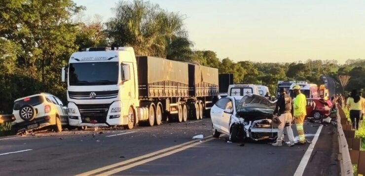 Um grave acidente na tarde deste domingo (4) resultou na morte de uma mulher e deixou pelo menos 12 pessoas feridas na BR-163, em Nova Alvorada do Sul. A colisão múltipla ocorreu no quilômetro 400 da rodovia, em um trecho sinuoso conhecido como Curva do Adelino, localizado a aproximadamente 20 quilômetros da cidade.