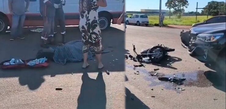 Um grave acidente de trânsito resultou na morte de um motociclista na manhã desta sexta-feira, em Dourados. A colisão, que envolveu uma caminhonete, ocorreu em uma via da cidade e mobilizou equipes de socorro.
