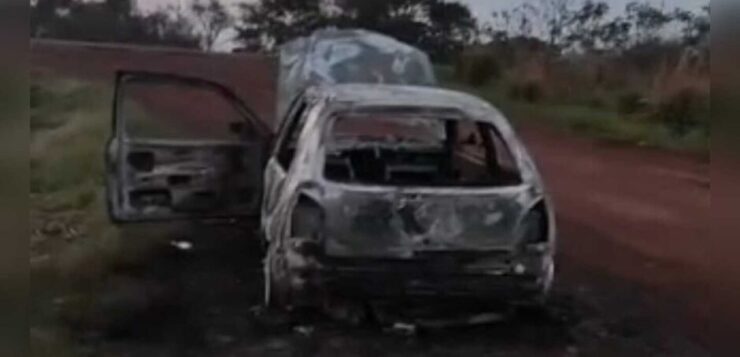 Uma pessoa ainda não identificada foi encontrada carbonizada dentro de um carro em chamas, durante a madrugada desta segunda-feira (6), em uma estrada vicinal que dá acesso à BR-163, em Rio Brilhante, a cerca de 160 quilômetros de Campo Grande.