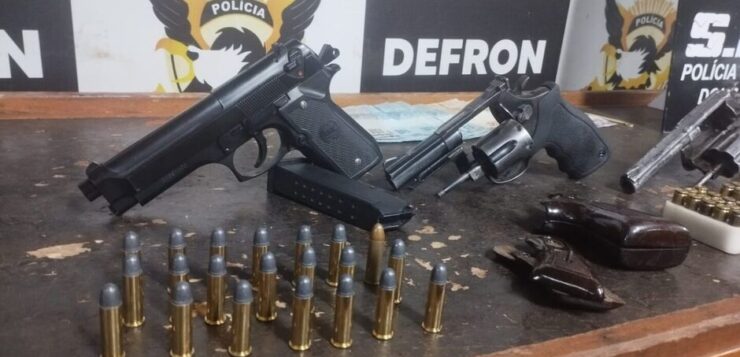 Durante as diligências, os policiais flagraram os dois suspeitos negociando um revólver na residência de P.H.S.C. No local, foi encontrado um revólver calibre .38, municiado com duas munições intactas, além de outras 30 munições do mesmo calibre e dois pares de empunhadura de revólver.