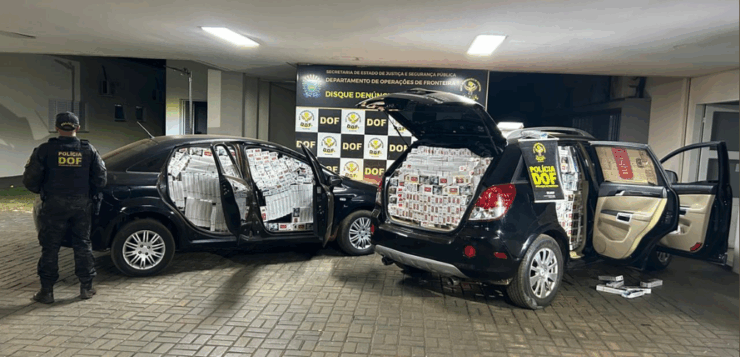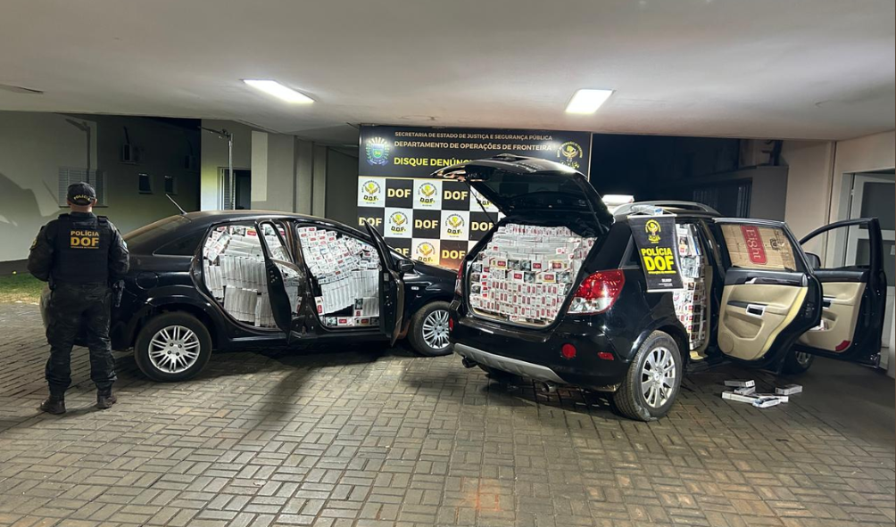 Policiais militares do DOF (Departamento de Operações de Fronteira) apreenderam, nesta segunda-feira (21), em Rio Brilhante, um GM Captiva e um Fiat Linea carregados com cigarros contrabandeados do Paraguai. Na ação, dois homens, de 21 e 31 anos, foram presos.