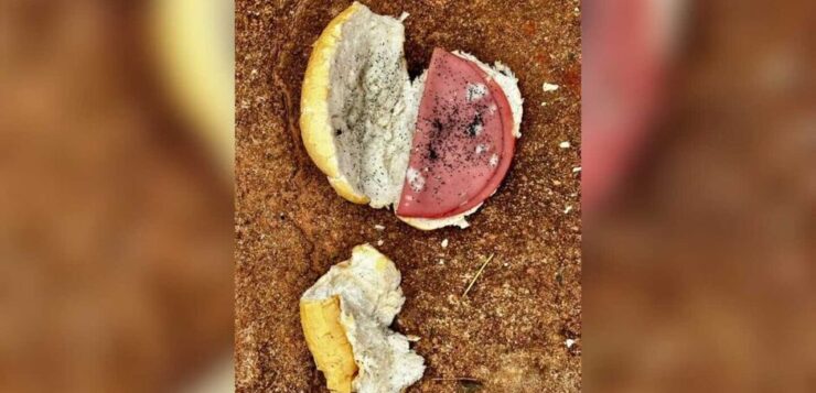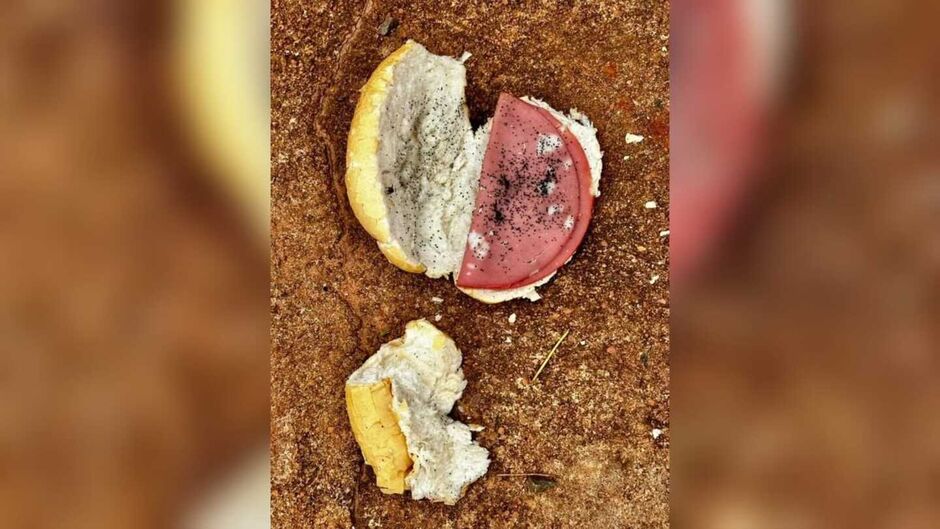 Próximo ao local, os policiais encontraram um saco com restos de pão e mortadela misturados a uma substância escura, semelhante ao veneno conhecido como “chumbinho”. O material foi recolhido pela perícia técnica para análise laboratorial.