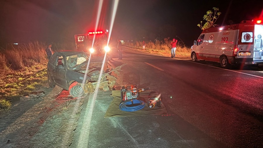 Gol colide com caminhão na MS-134: motorista morre e vítimas são levadas ao hospital