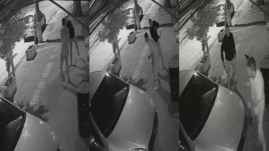 As imagens mostram a vítima sentada próximo a uma conveniência, quando o suspeito se aproxima e já inicia os golpes. O homem tenta se defender e chega a levantar, mas ainda assim sofre novas investidas até que o agressor desiste e sai caminhando.
