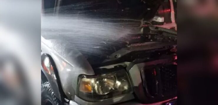 O condutor relatou que, após o impacto, percebeu fumaça saindo pela grade dianteira e estacionou em um pátio próximo para verificar. Ao abrir o capô, constatou o início de um incêndio no compartimento do motor.