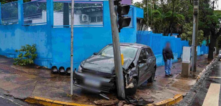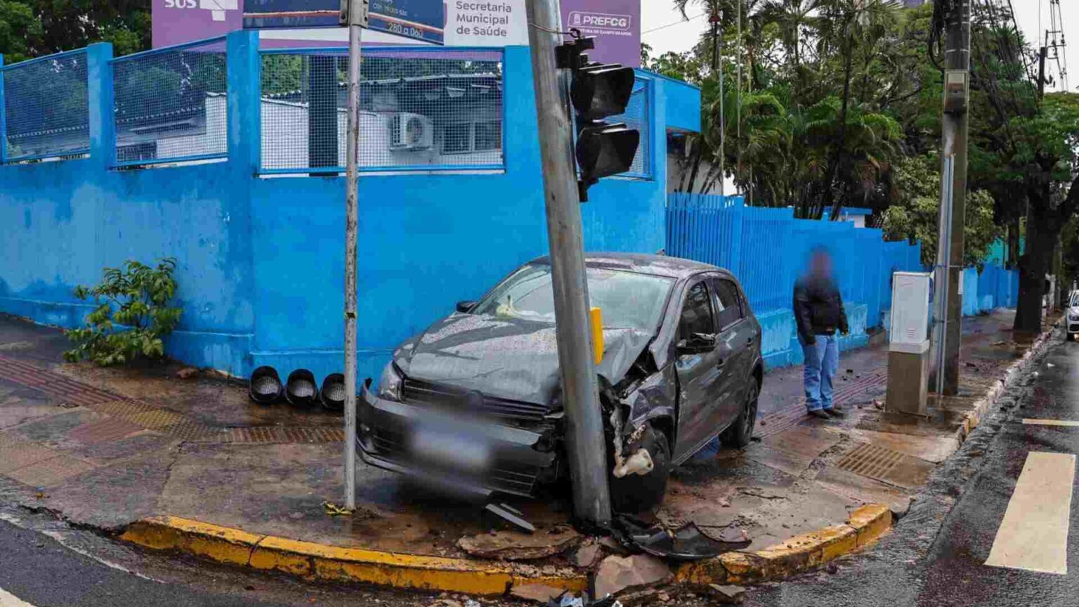 Um jovem de 19 anos foi preso em flagrante na madrugada deste domingo (15) após causar um acidente em frente ao Batalhão de Trânsito da Polícia Militar, no Centro de Campo Grande. O motorista, conduzindo um veículo Gol, perdeu o controle da direção e colidiu com um semáforo no cruzamento das ruas Barão do Rio Branco com a Bahia.