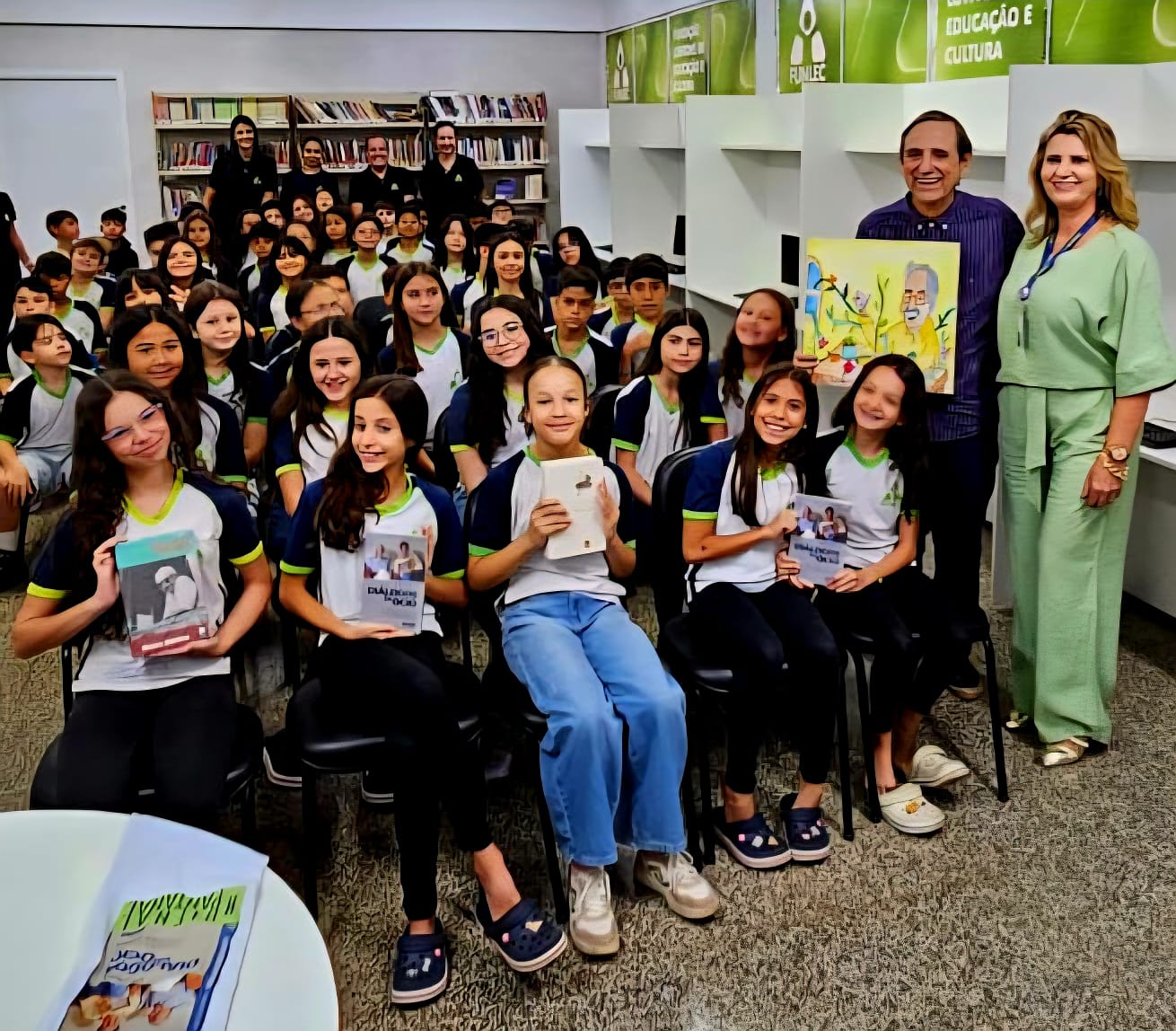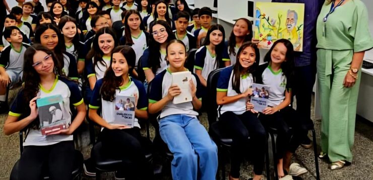 As atividades contaram com uma palestra do jornalista e escritor Bosco Martins, autor do livro “Diálogos do Ócio”, para cerca de 300 alunos do 5º ano do Colégio Oswaldo Tognini (Funlec). Os estudantes celebraram o poeta com desenhos e poesia inspirados em sua literatura. O livro de Martins é referência para estudiosos e tem testemunhado a imersão de jovens na obra de Barros, também observada em outras instituições, como a Escola Municipal Oliva Enciso. Lá, uma exposição reuniu versos, desenhos, objetos e móveis que reproduziam o ambiente do poeta, incluindo o sofá e a icônica máquina de escrever sobre sua escrivaninha.