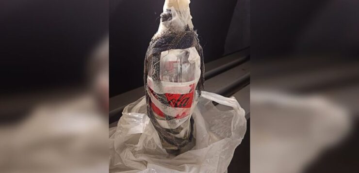 Quando a PM tentou realizar a abordagem, a mulher resistiu e precisou ser contida. Dentro do imóvel, os policiais encontraram uma garrafa PET de 2 litros com gasolina e um pedaço de pano, evidenciando que o artefato incendiário estava pronto para uso.