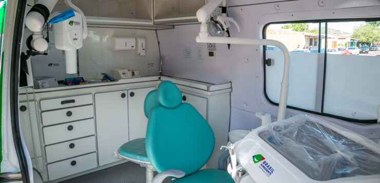 As Unidades Odontológicas Móveis funcionam como extensão das Unidades Básicas de Saúde e realizam tanto procedimentos de atenção primária quanto tratamentos especializados, como endodontia e confecção de próteses dentárias. Cada unidade conta com cadeira odontológica completa, aparelho de raio-x, ar-condicionado, gerador de energia, exaustor, frigobar, canetas de alta e baixa rotação e fotopolimerizador.