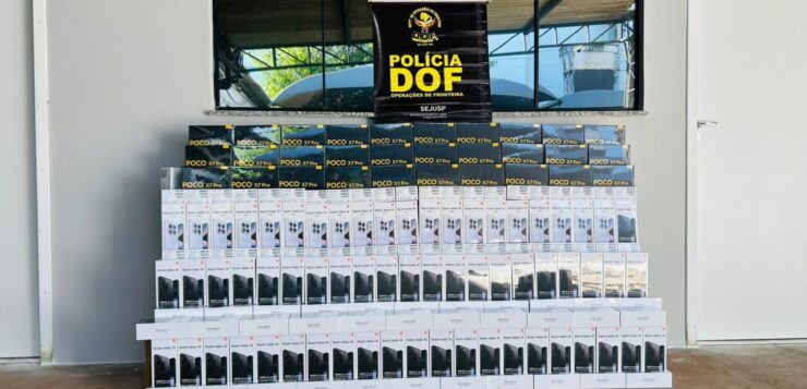 Policiais militares do DOF (Departamento de Operações de Fronteira) apreenderam nesta segunda-feira (20), na MS-386, em Aral Moreira, 242 aparelhos de telefone celular que eram transportados de forma clandestina em uma carreta Scania carregada com trigo. Dois homens, de 29 e 37 anos, foram presos durante a operação.