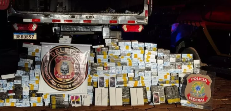 A Polícia Federal apreendeu, nesta quinta-feira (3), cerca de mil celulares contrabandeados que estavam escondidos em um caminhão frigorífico na BR-163, em Campo Grande.