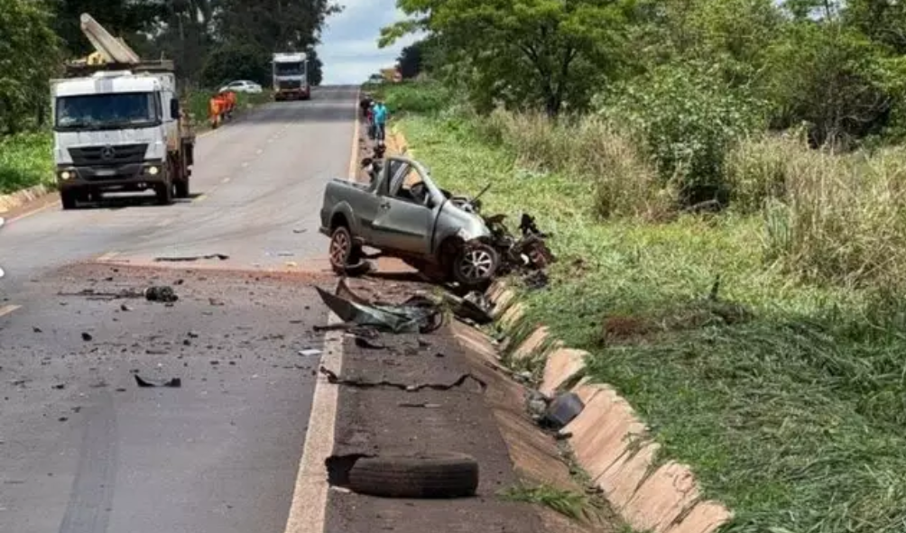 Um grave acidente na manhã desta segunda-feira (3) resultou na morte de Reinaldo Aparecido Veiga, de 47 anos, na BR-376, próximo ao km 128, entre Ivinhema e o distrito de Amandina, em Mato Grosso do Sul. A violência do impacto foi tamanha que o veículo conduzido pela vítima, uma Saveiro, acabou partido ao meio.