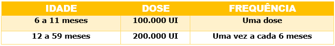 Esquema para administração de Vitamina A em crianças de 6 a 59 meses: