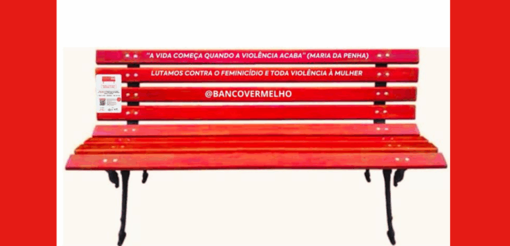 A proposta é simples, mas profunda: bancos vermelhos instalados em espaços públicos servem como memoriais às vítimas de feminicídio e como convites à reflexão sobre a cultura da violência e da desigualdade de gênero.