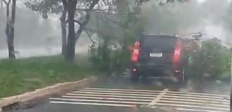 A força do vento derrubou árvores, provocou apagões e deixou cruzamentos importantes sem sinalização. Na Avenida Mato Grosso com a Rua Paulo Machado, os semáforos ficaram desligados, obrigando motoristas a adotar a regra informal de “quem chega primeiro passa”. Apesar da confusão e do trânsito lento, não houve registro de acidentes.